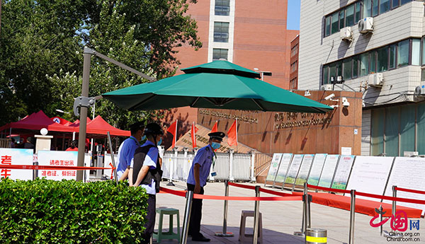 2020年7月7日,北京,人民大学附属中学考点外的工作人员。中国网记者 董小迪 摄