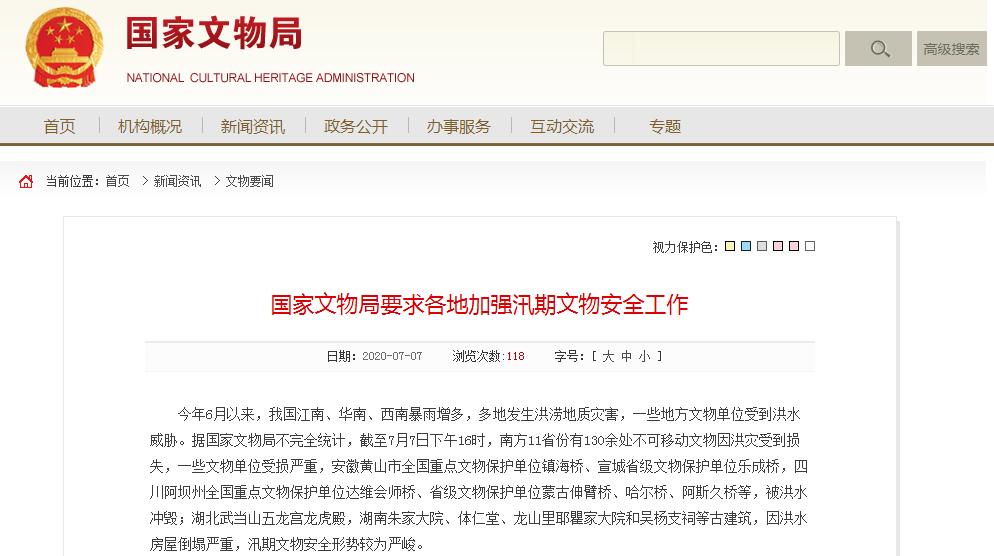 当前,按照国家文物局要求,各相关省份文物部门和文博单位均已启动汛期安全应急机制,全力开展文物防汛安全工作。