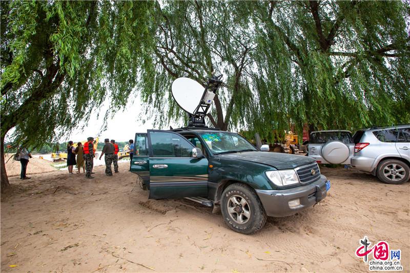 现场抢险实时情况通过转播车,传往远方的防汛抢险指挥部,前后方信息能做到快速实时相通。