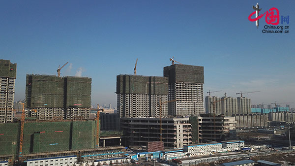 2020年2月17日,吉林,长春市南关区华新街附近一处在建楼盘(无人机照片)。新华社记者 张楠 摄