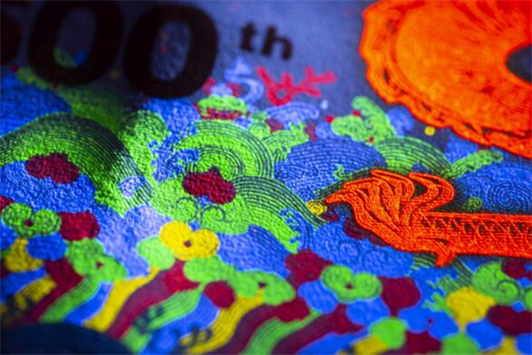 纪念券采用手工雕刻凹印技术,高清专用水印纸张,动感光变开窗安全线,红外对印、缩微文字、多种荧光套印、丝网光变、AR增强现实等十余种印钞造币独有的钞币设计与印制技术。尤其是双色凹印荧光油墨印刷,是该工艺在纪念券里的第一次应用;江崖海水纹采用胶印专色印刷,四种颜色线条水纹在日光下精准套印,在荧光灯下呈现四色炫彩效果。