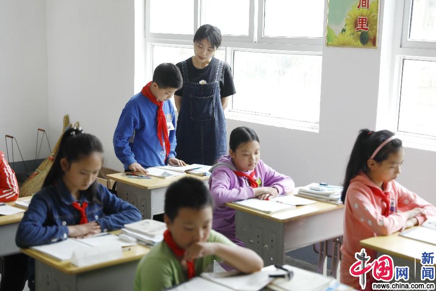 杨莹老师带领五年级的同学们在课堂上朗读课文。中国网记者 马旷/摄