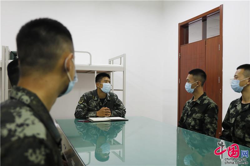 孟晗阳与新兵谈心。通讯员 梁稼轩/摄