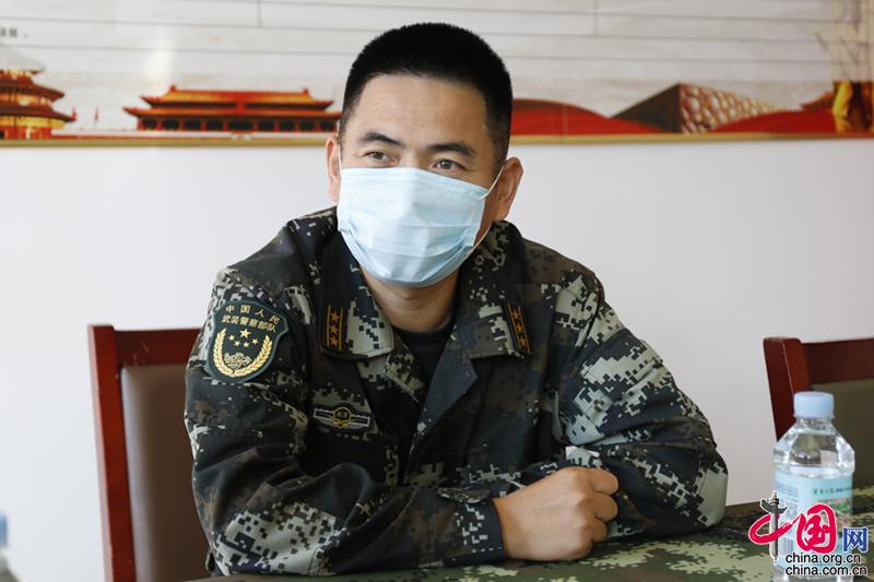 武警北京总队新兵十六大队教导员王兴明接受采访。通讯员 葛志伟/摄