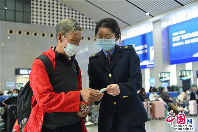 绵阳车务段工作人员为旅客答疑解惑。 邓文鑫 摄
