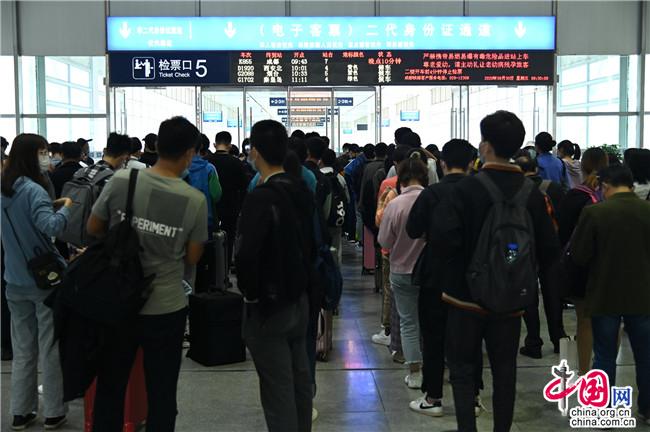 中国网9月30日讯 (记者 彭瑶 通讯员 邓文鑫)为期11天的铁路国庆黄金周运输已于9月28日正式启动。预计9月28日至10月8日,中国铁路成都局集团公司绵阳车务段将发送旅客52.3万人次。10月1日为客流最高峰,预计发送旅客5.8万人次,将创疫情发生以来日均客流新高。