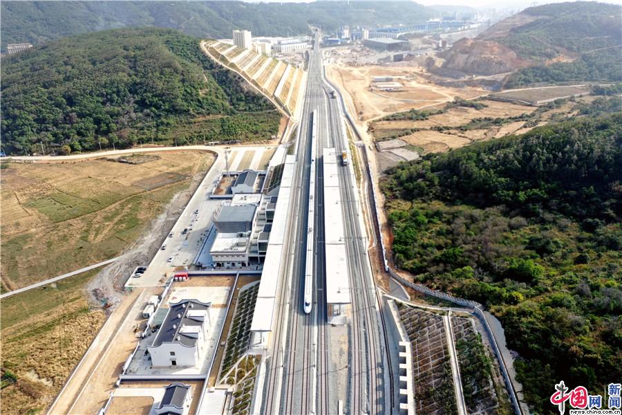 福平铁路试运行阶段,动车组列车驶过福平铁路长乐南站。 (中国网发 王福斌/摄)