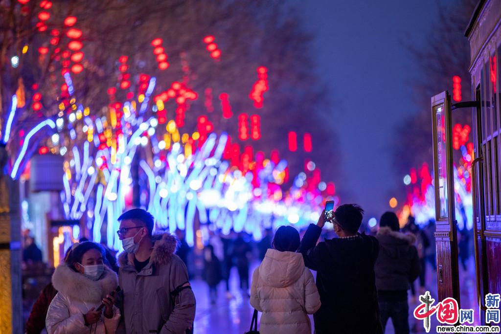 北京前门大街红灯高挂 迎接新年氛围浓