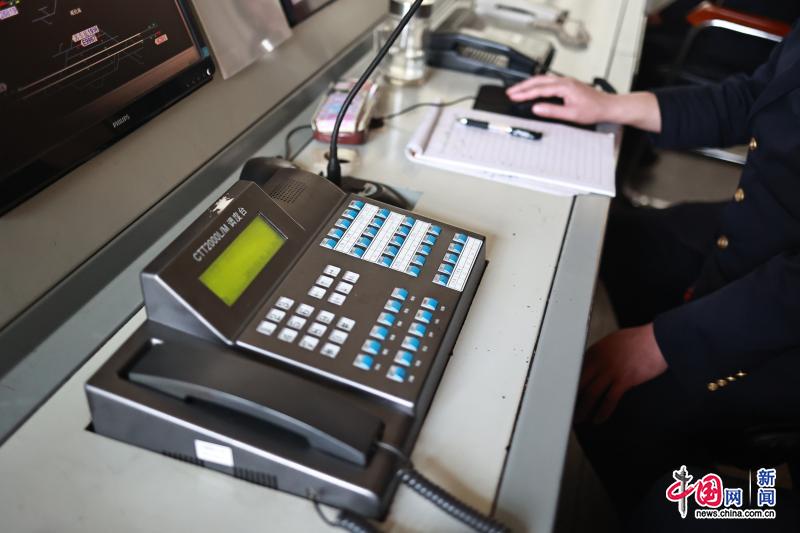车站信号楼工作人员与火车司机进行安全联控的数调电话。中国网发 苏志刚/摄