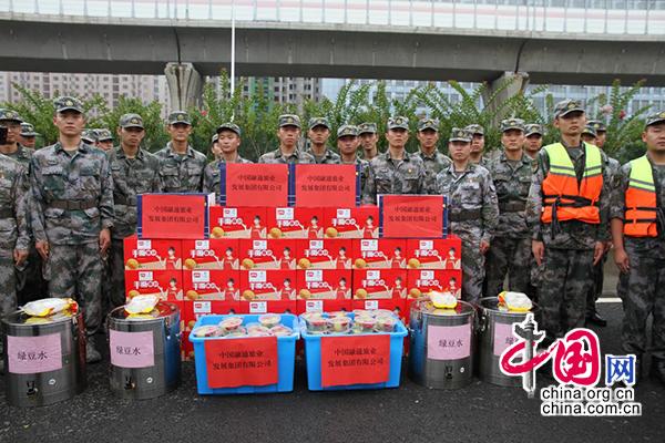 得知有1000余名解放军指战员和民兵奋战在贾鲁河堤坝管涌现场,饮食保障有困难时,郑州豫鹰宾馆主动与部队沟通,克服困难迅速采买食材原料,紧急提供500份热食和60件纯净水。