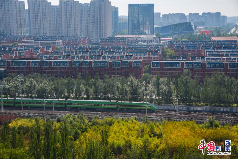 2021年10月12日,内蒙古呼和浩特,“绿巨人”动车组驶出呼和浩特东站。中国网发 唐哲/摄