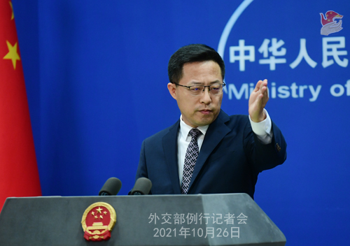 中国网10月26日讯 据外交部网站消息,针对“美国海军核潜艇此前在南海与不明物体发生撞击”一事,中国外交部发言人赵立坚在今日举行的例行记者会上四问美方。