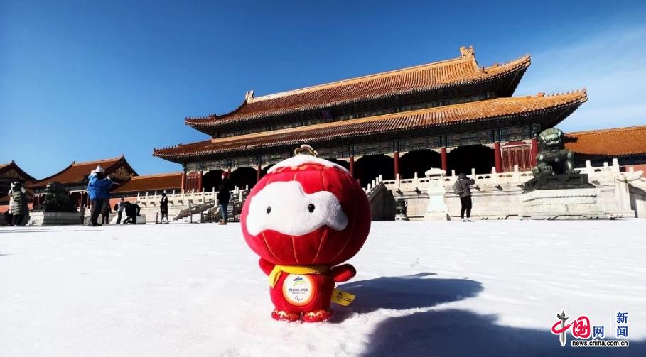 步入故宫,太和殿前,洁白冰雪覆盖下,紫禁城尽显魅力。放眼望去,身披“白纱”的宏伟宫殿,宛如“冰丝带”的金水河,平整无暇的雪地,如同另一个穿越了时空的冰雪“赛场”。而北京2022年冬奥会吉祥物“雪容融”的出现,更是吸引了众多记者的目光。