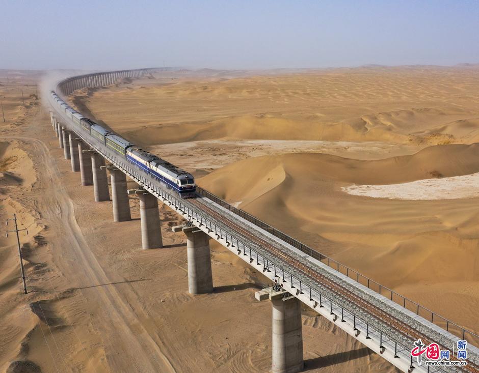 中国网6月15日讯 (记者 唐佳蕾)记者从中国国家铁路集团有限公司(以下简称国铁集团)获悉,6月16日,和田至若羌铁路(以下简称和若铁路)开通运营,和田至若羌11小时26分可达,新疆铁路网进一步完善,形成世界首个沙漠铁路环线——长达2712公里的环塔克拉玛干沙漠铁路环线。