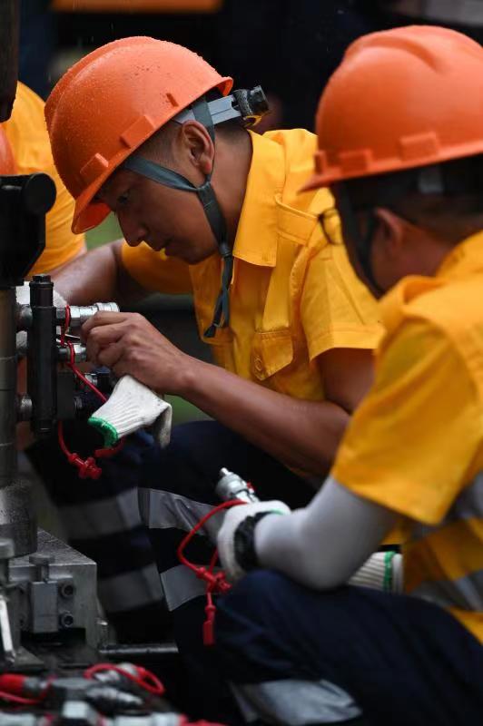 铁路职工对货物列车脱轨进行模拟救援演练。中国网发 唐哲/摄
