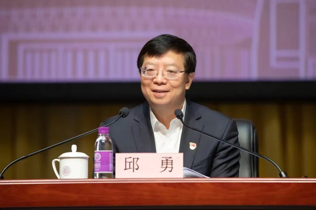 清华大学党委书记邱勇传达领学党的二十大精神。供图:北京教育融媒体中心