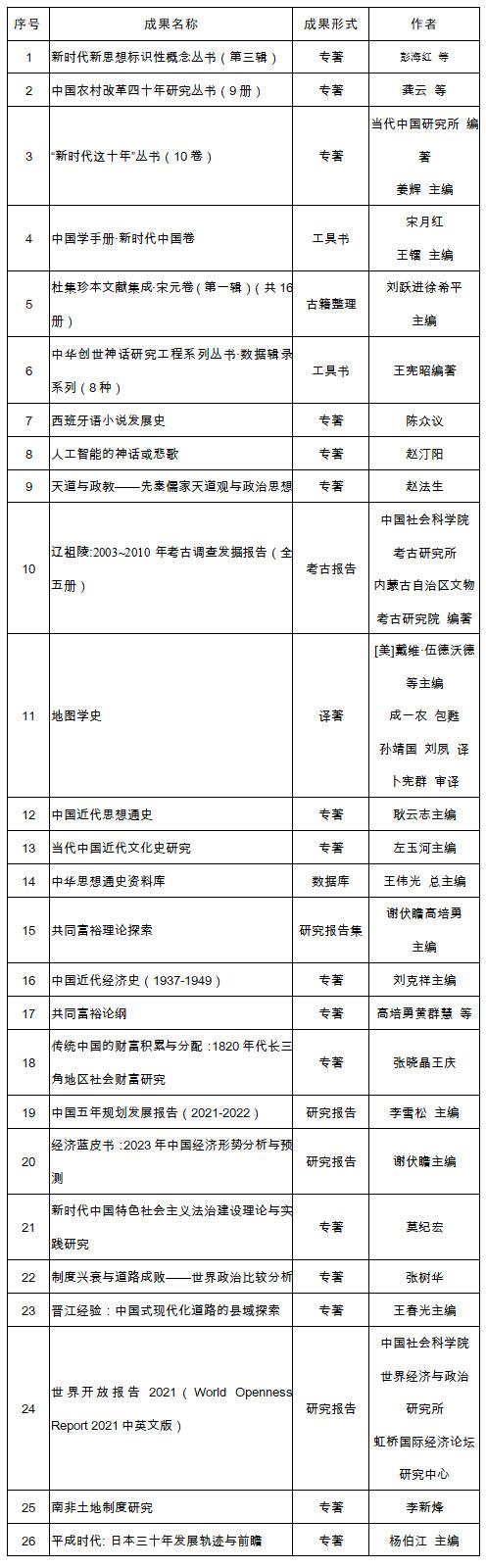 以下为中国社会科学院创新工程2022年度重大科研成果: