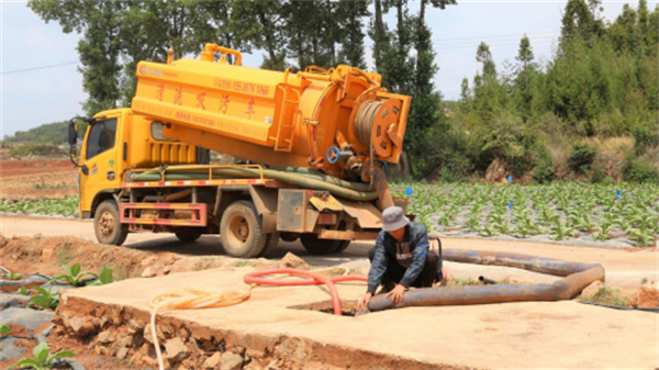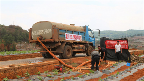 村民自发拉水存入田间地头的蓄水池中用于农耕