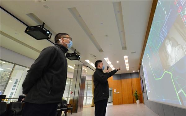 图为“送货线路规划”团队结合大屏探讨线路精简思路。夏俊/摄