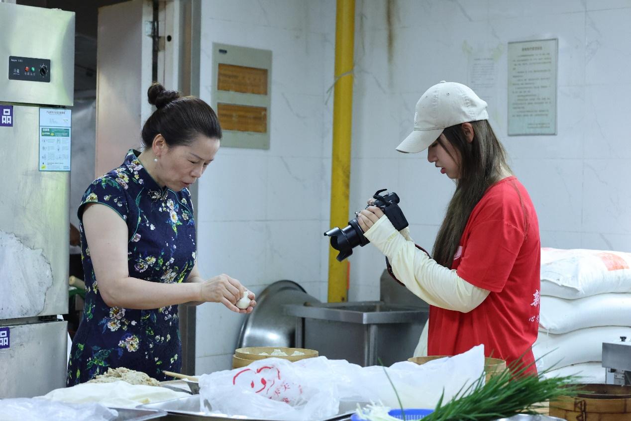 实践队员田雨婷正在拍摄孙老师制作小笼汤包