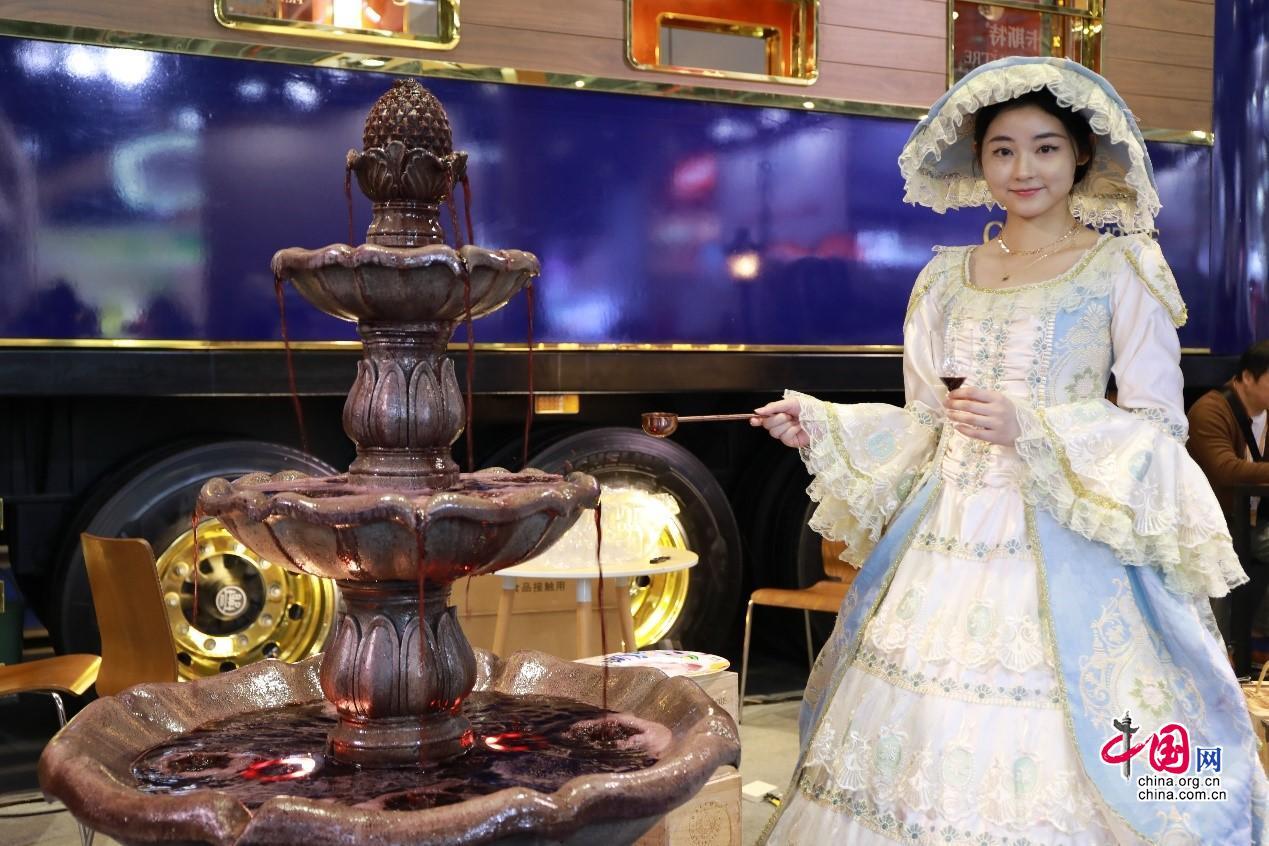 进博会现场法国红酒品牌卡斯特打破了红酒“一本正经”的形象,直接把红酒喷泉摆在了展台C位,流动的红酒,加上灯光的映衬,晶莹透亮,还有淡淡的红酒醇香,吸引了众多消费者前来围观,还有“茜茜公主”为大家从喷泉中舀出红酒来品尝。