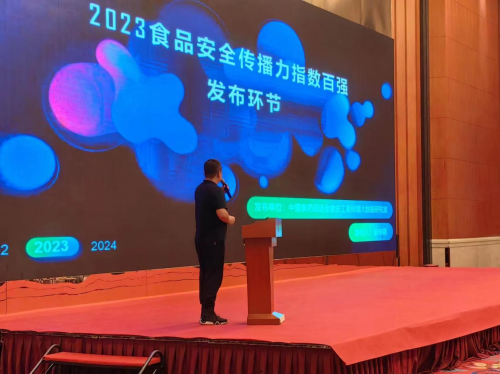 在此次大会上,奎越科技总裁唐申硕发布了《2023食品安全传播力指数百强》,并就食品安全传播力、食品安全美誉度、企业品牌声量,企业质量安全关注度、企业质量安全度等方面展开了详细介绍。