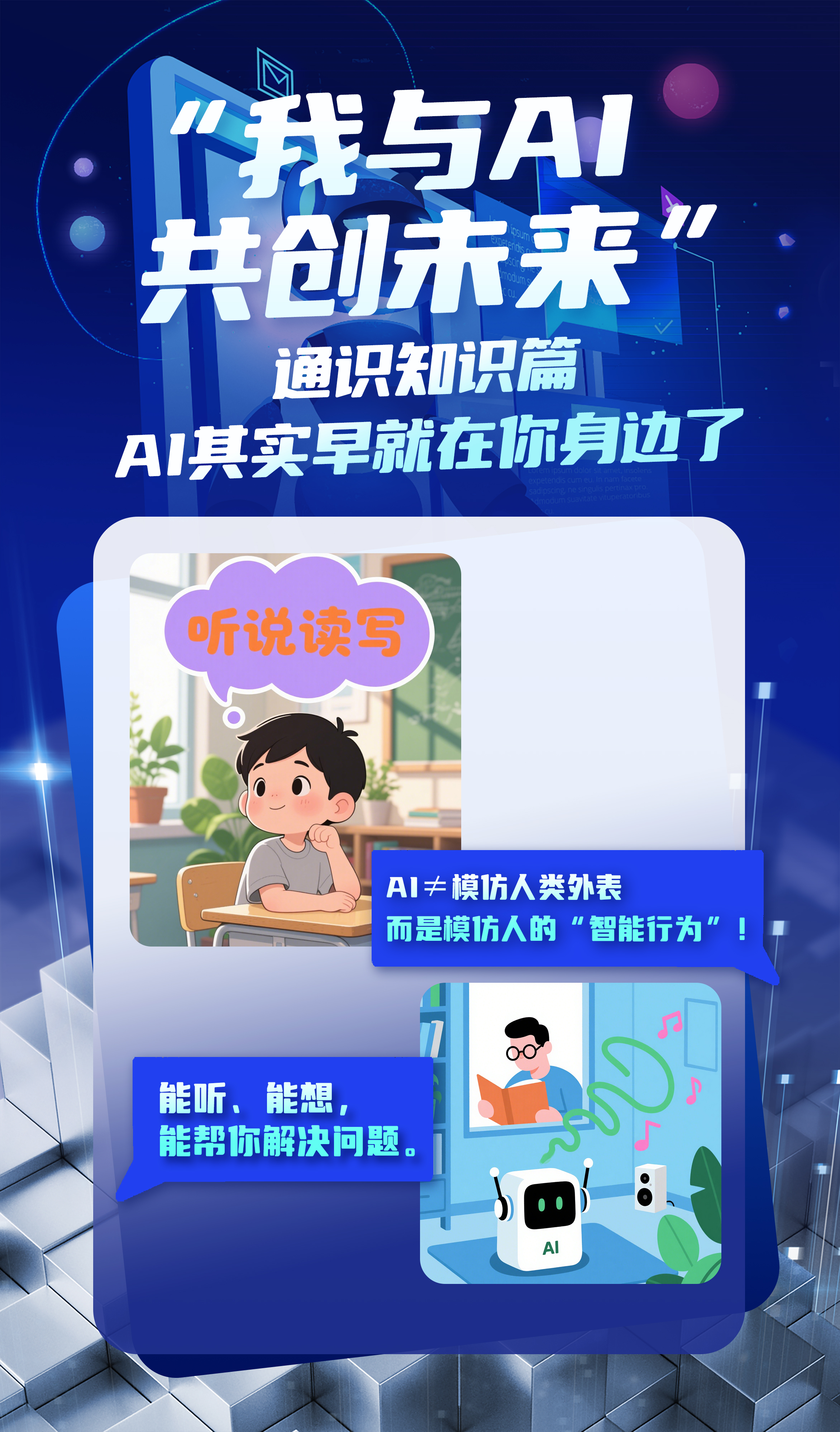 本期“我与 AI 共创未来之通识知识篇”中,我们将摒弃枯燥的理论与高深的技术探讨,聚焦于大众所关心的人工智能核心问题:人工智能究竟是什么?它与我们的距离有多近?又能为我们带来哪些实际作用?一起在视频中寻找答案吧!
