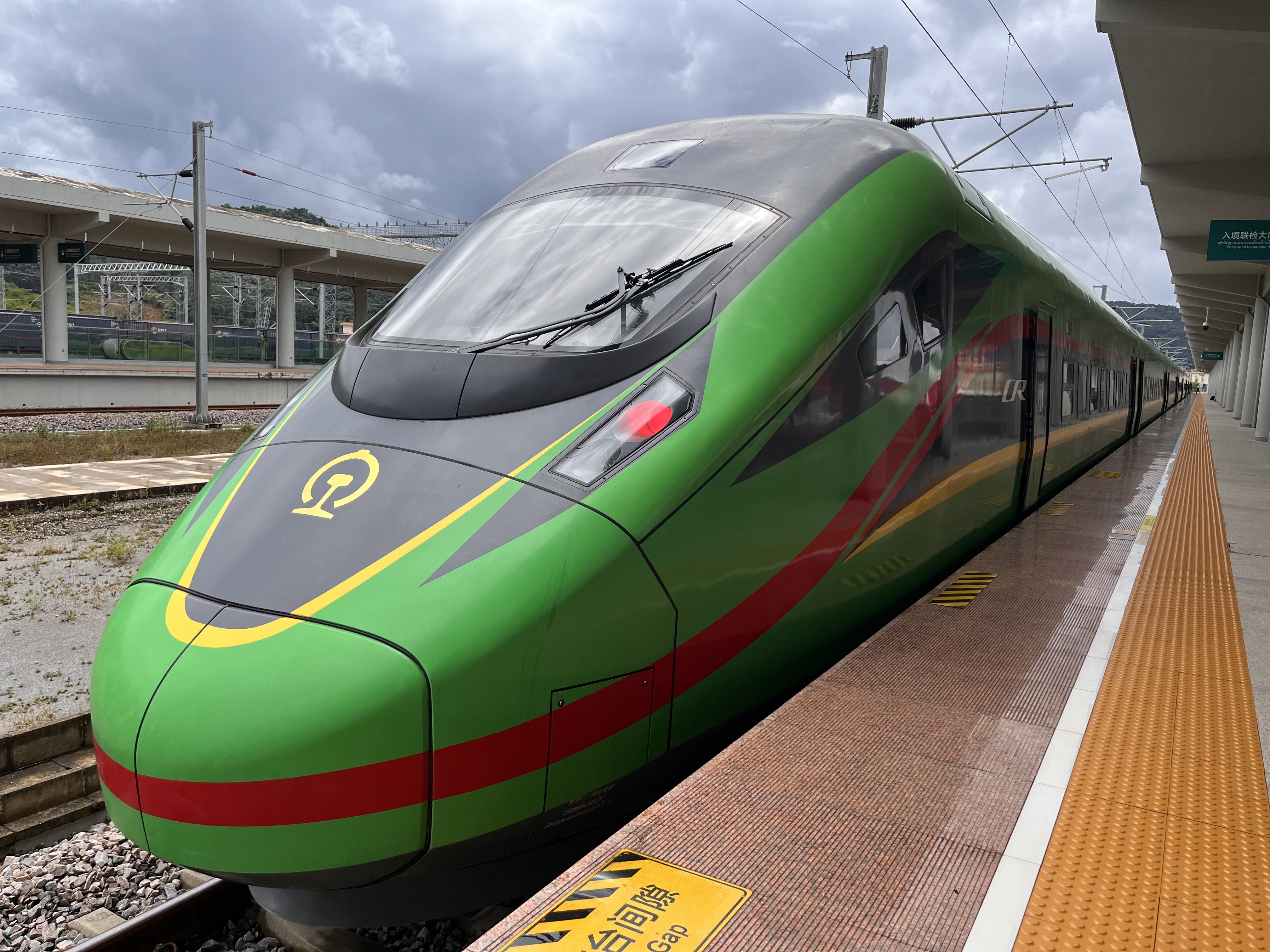 “复兴号”国际旅客列车停靠在中老铁路磨憨站。中国网记者 唐佳蕾 摄
