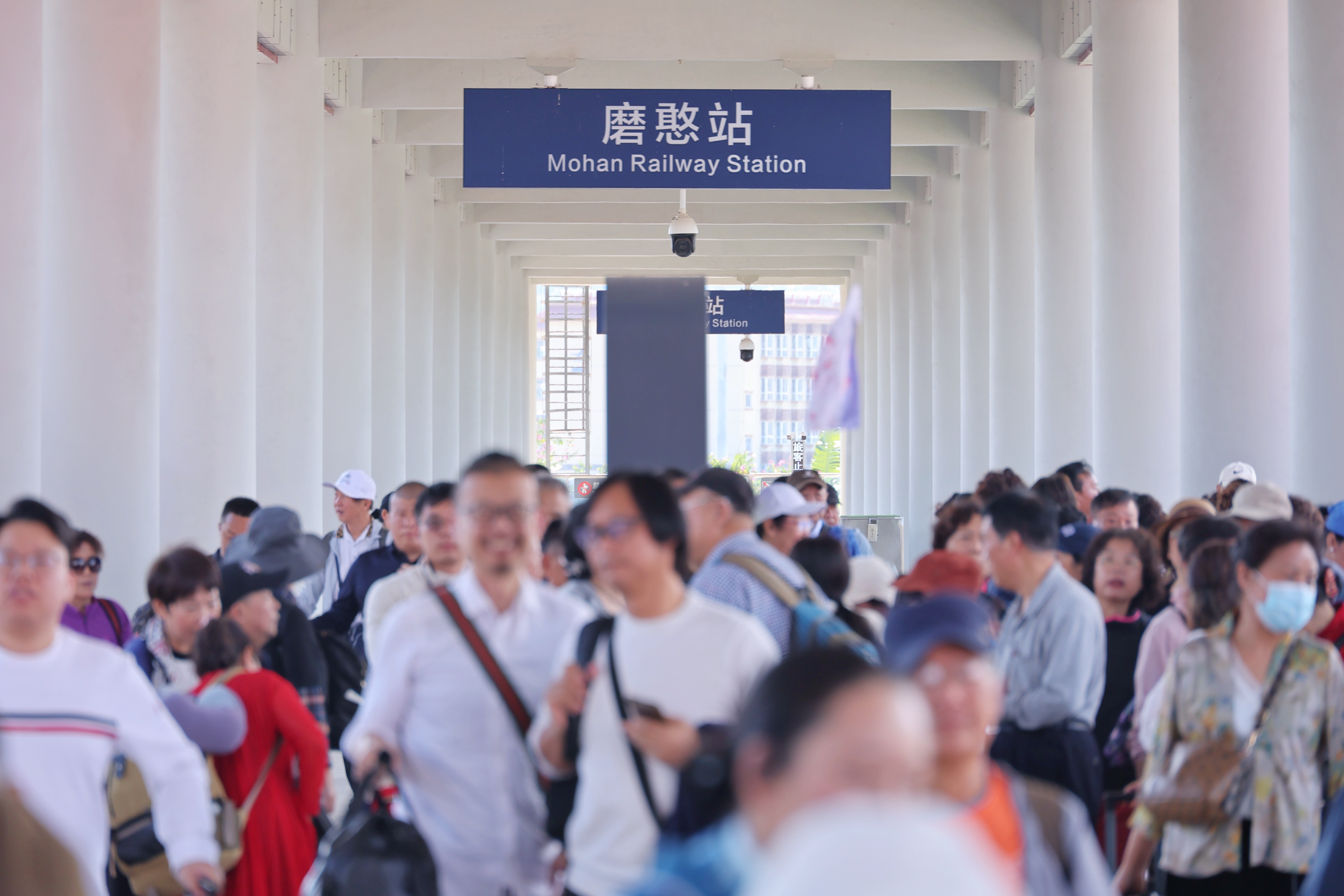 磨憨站站台上,即将出站的旅客。中国网发 杨紫轩 摄