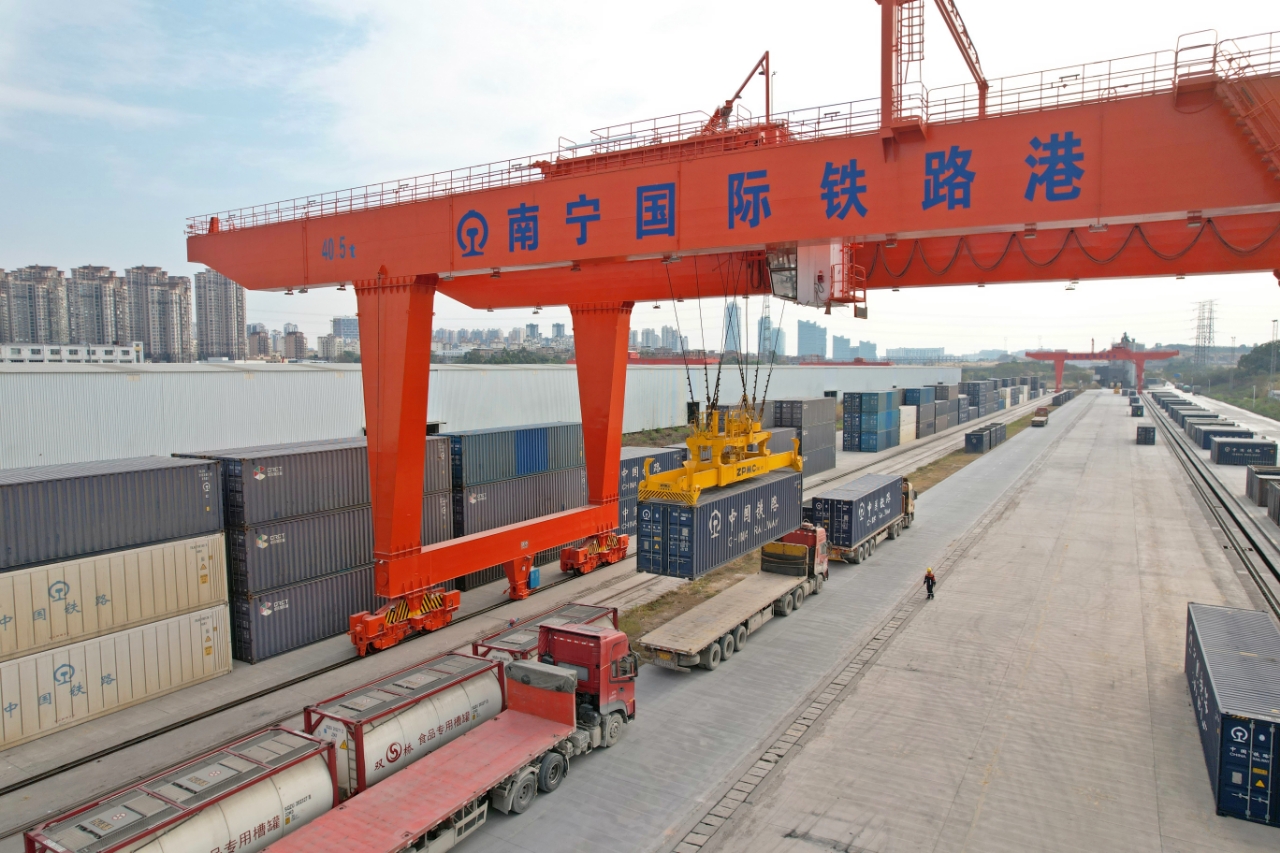 中国网9月23日讯 (记者 唐佳蕾)记者从中国铁路南宁局集团有限公司(以下称“国铁南宁局”)获悉,今年以来截至9月22日,广西始发中越班列已累计发运出口货物2.6万标箱,同比增长173%,超2024年全年总量33%,为区域产业链供应链稳定和经贸往来注入强劲动能。9月23日,记者跟随“钢铁丝路好风光”采访团走进南宁国际铁路港,实地探访这条中越国际铁路物流的“黄金通道”。 中越跨境货物有序作业中。中国网发 张文健 摄 中越班列是连接中国与越南的重要铁路物流通道。2017年11月首趟中越班列正式开行,成功开辟了中越货物运输“快车道”。2023年,湘桂铁路南宁至凭祥段完成提质改造,中越国际铁路大通道列车运行时速从60至80公里提高到90公里,同年6月,中越班列采取“铁路快速通关”模式,实现一次申报,直接出境,通关效率大幅提升。 目前,广西始发中越班列南宁南站至越南安员站全程运输时间最快14小时,可实现货物“当日发车、当日抵达、当日清关”。今年,国铁南宁局与越南铁路部门协商,将出入境货物列车牵引吨数由1000吨增加到1300吨,中越班列开行频次由每周5列加密至14列。 中越班列货主在柜台办理业务。中国网发 陈星宇 摄 “我们依托中国外运的全网资源,将各地零散货源集聚南宁后,换乘中越班列销往越南,这不仅提升了运输时效,还增强了我们服务客户的稳定性和市场竞争力,为我们拓展东盟市场提供有力支撑。”中外运广西有限公司陆运事业部业务经理朱世强说,今年以来,随着越南市场对聚氯乙烯、汽车配件等工业制品需求持续旺盛,得益于中越班列高效、稳定的运输优势,公司今年1—8月累计发运量达8722标准箱,货运量提前数月超过去年全年总量。 装卸作业人员指挥跨境集装箱吊装上火车。中国网发 陈星宇 摄 据南宁铁路物流中心南宁南营业部副经理覃劲松介绍,广西始发中越班列于2017年11月首次开行以来,货物发送量呈逐年增长态势,2025年前7个月已超2024年全年总量。“依托中越班列的时效优势,目前已有16家企业通过中越班列发运货物,其中有3家企业年发运量超2000标箱。”覃劲松向中国网记者透露。 记者了解到,目前,中越班列运输货物涵盖电子产品、机械设备、化工产品、农副产品、日用品等品类,货物品名达412个,货源辐射至国内25个省区市。中越班列已成为连接中国与越南及东盟其他国家经贸往来的重要陆路通道。