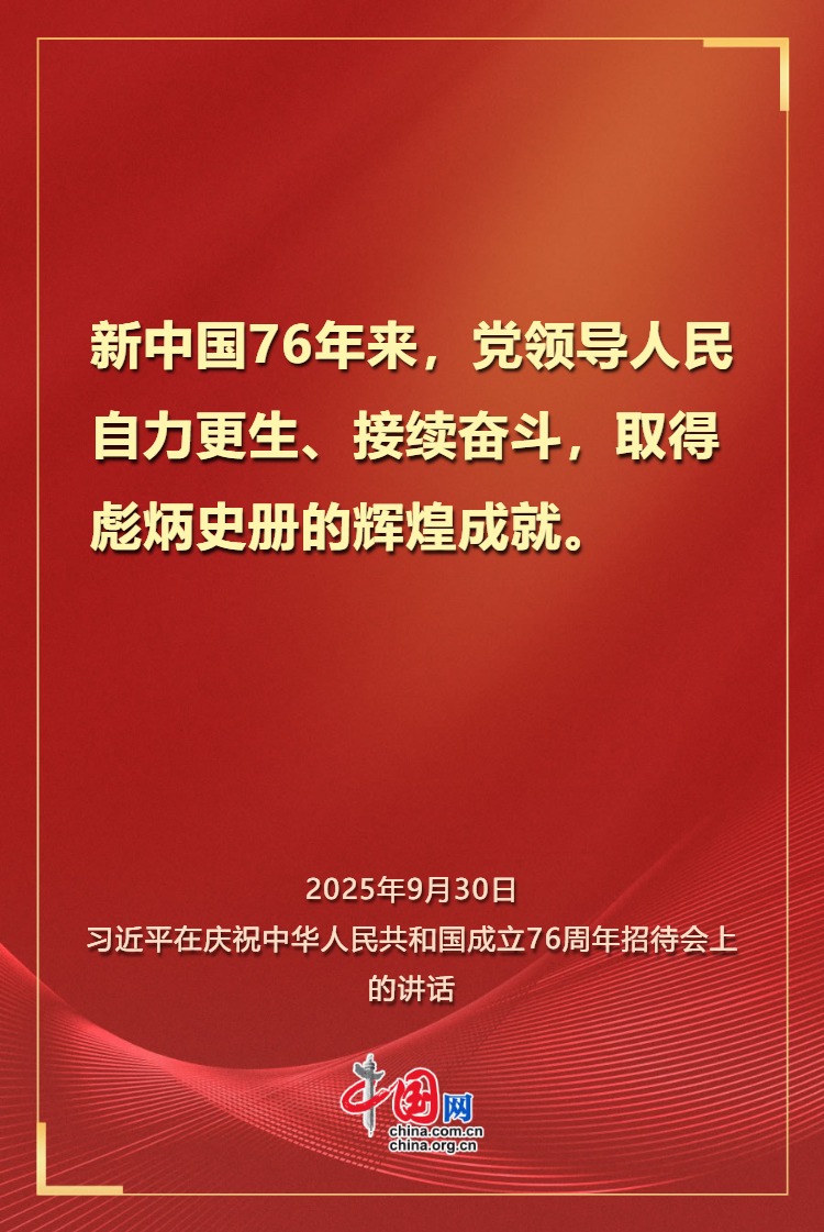 庆祝中华人民共和国成立76周年招待会30日晚在人民大会堂举行。中共中央总书记、国家主席、中央军委主席习近平出席招待会并发表重要讲话。