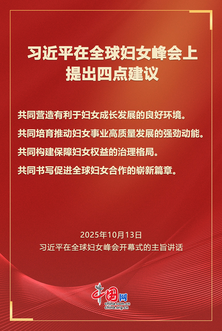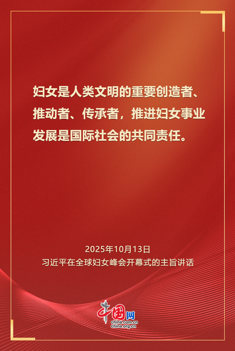 10月13日上午,中国国家主席习近平在北京国家会议中心出席全球妇女峰会开幕式,并发表题为《弘扬北京世妇会精神 加速妇女全面发展新进程》的主旨讲话。