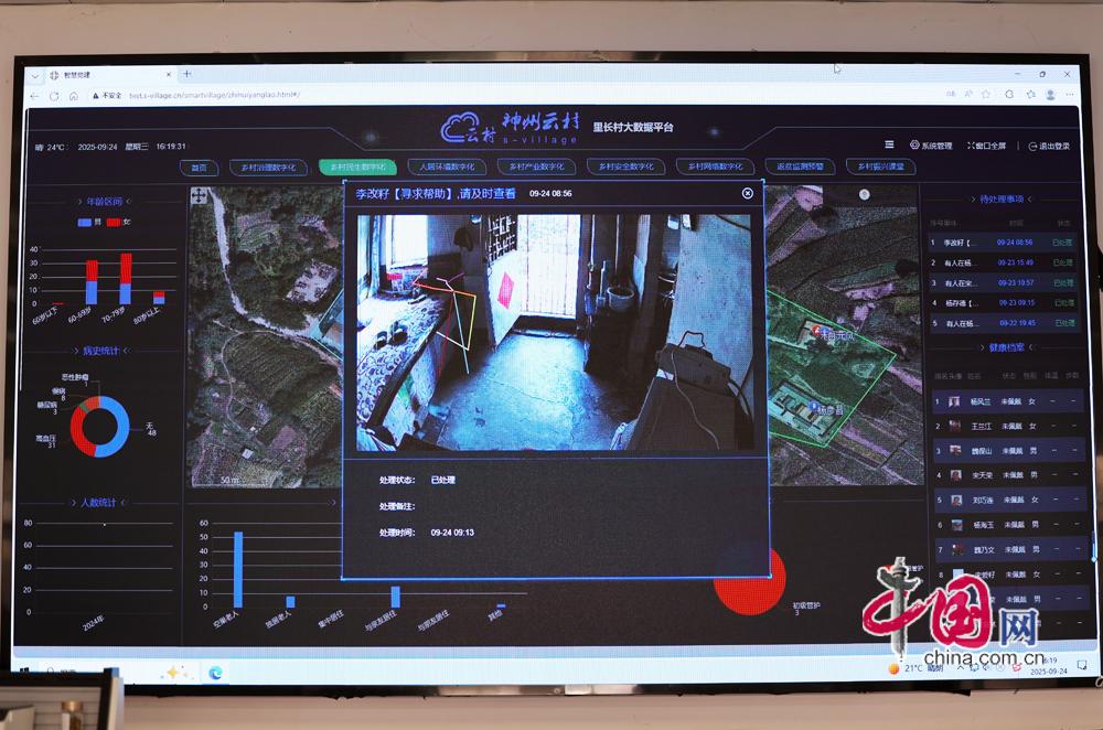 据乡镇包村干部、挂任里长村副书记的高艺卿介绍,如果老人在家摔倒,村委会的大数据平台就会马上收到预警信息。工作人员将及时查看老人家中的实时监控录像进行确认,若情况属实,将立即通知网格员或村干部。相关人员会第一时间赶到现场,根据情况的严重程度联系村医或拨打120,确保将老人及时送医。“整个流程不会超过10分钟。”高艺卿说。
