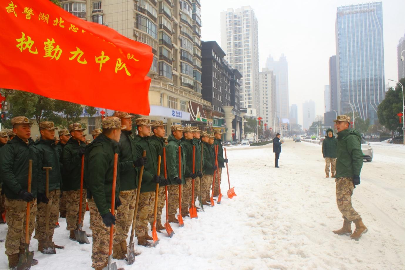 九中队战士除雪救灾。张志伟摄