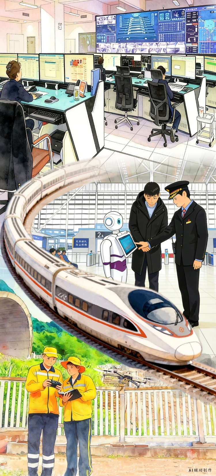 AI的“无界服务”,更彰显铁路人普惠民生的责任担当。春运的归乡大军中,既有不熟悉智能设备的年迈老人,也有首次独自出行的懵懂学生,还有携带行李的务工游子,不同群体的出行需求差异显著,这对铁路服务的包容性提出了更高要求。2026年春运,AI技术成为打破服务壁垒、实现普惠均等的重要支撑:升级后的智能客服实现24小时全天候在线,不仅响应速度更快,更新增了多地方言识别功能,无论是四川话、粤语还是东北话,都能精准理解需求并给出清晰指引,彻底消除了老年旅客的语言与操作障碍;广州白云站、昆山南站等车站推出的VR沉浸式导航服务,旅客只需在手机上轻轻一点,就能生成三维立体的站内换乘路线,清晰标注检票口、卫生间、服务台等关键位置,让首次出行的旅客提前“踩点”、告别迷茫。从“一刀切”的标准化服务到“量身定制”的个性化服务,从“人找服务”的被动模式到“服务找人”的主动姿态,AI技术让铁路服务的触角延伸到每一个角落,覆盖到每一个需要帮助的群体,这背后正是“人民铁路为人民”宗旨的始终坚守。