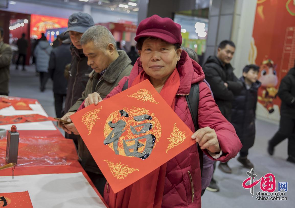 来自廊坊的周天曼女士听闻此次活动欣然前来体验。她在红纸上挥毫泼墨,写上自己心仪的“福”字带回家。她坦言幸福满满,感受到浓浓的年味。中国网记者 马旷 摄