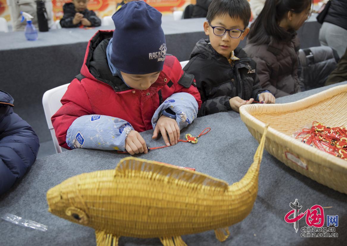 小朋友在非遗大集活动体验区尝试非遗技艺。中国网记者 马旷 摄