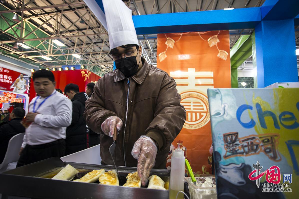 来中国五年的他,这次特意把家乡卷饼作了“本地化改进”——塞足烟熏鸡肉、牛肉粒,还加了中国人爱吃的酸豆角。“想让中国朋友吃得惯!”他笑着递出刚卷好的饼。