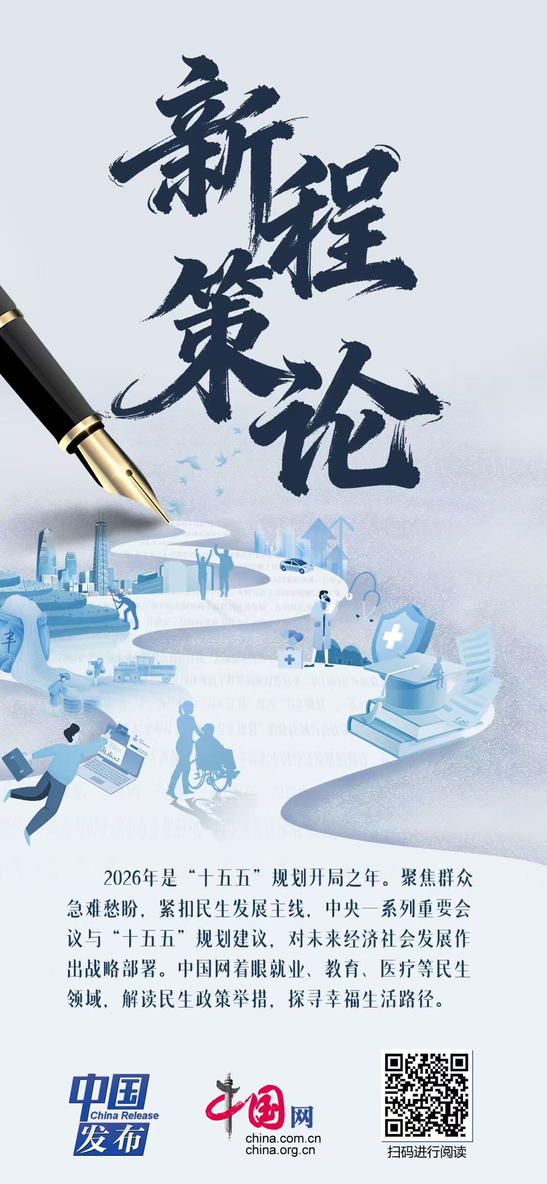 编者按:2026年是“十五五”规划开局之年。聚焦群众急难愁盼,紧扣民生发展主线,中央一系列重要会议与“十五五”规划建议,对未来经济社会发展作出战略部署。围绕就业、教育、医疗、养老、生育等民生领域,中国网推出《新程策论》系列解读稿件,观察我国在民生政策上的递进式部署与协同发力,探寻实现美好幸福生活的多元路径,解读民生部署背后的发展温度与实践力量。