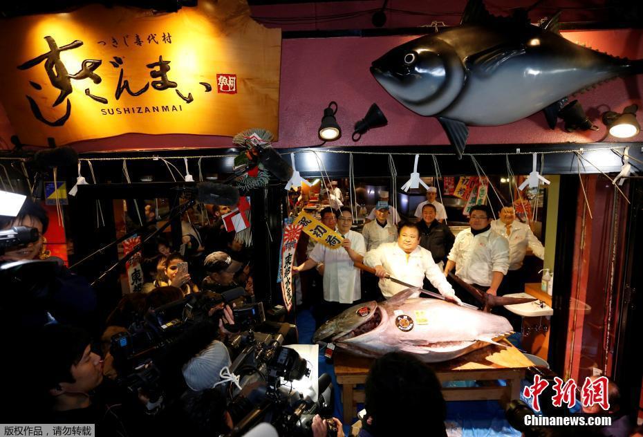 日本水产市场开市 巨型金枪鱼7400万日元成交(   / 8 )