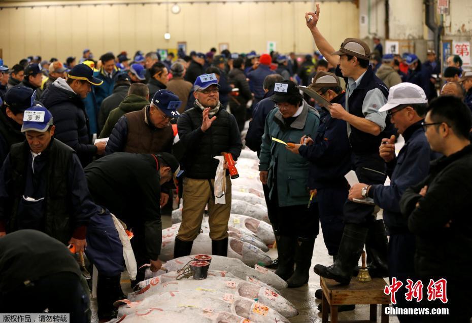 日本水产市场开市 巨型金枪鱼7400万日元成交(   / 8 )