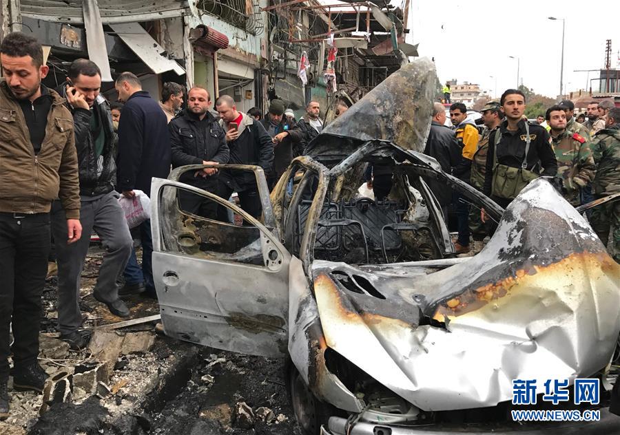 1月5日,在叙利亚西北部沿海城市杰卜莱,民众聚集在爆炸现场。叙利亚西北部沿海城市杰卜莱5日发生汽车炸弹袭击,造成9人死亡、15人受伤。新华社/法新