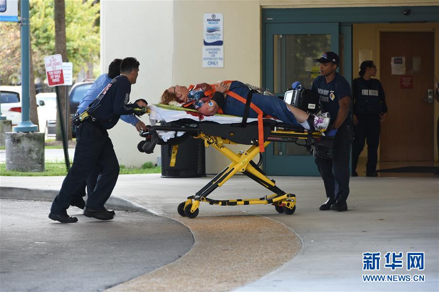 1月6日,在美国佛罗里达州劳德代尔堡,枪击事件中的伤者被送至医院。美国佛罗里达州一机场6日发生枪击事件。新华社/美联