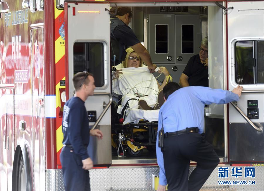 1月6日,在美国佛罗里达州劳德代尔堡,枪击事件中的伤者被送至医院。美国佛罗里达州一机场6日发生枪击事件。新华社/美联
