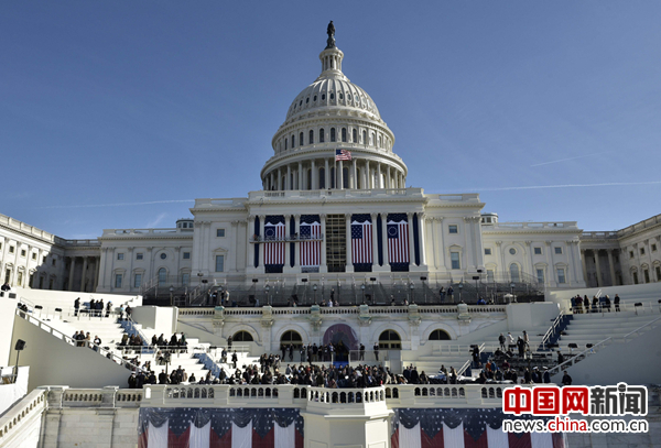 当地时间2017年1月15日,美国华盛顿,国会山举行特朗普就职仪式彩排。(MANDEL NGAN/视觉中国)