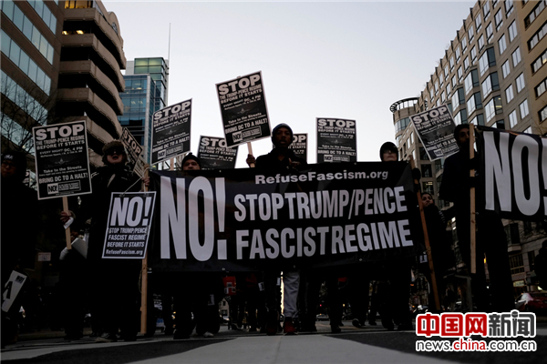 当地时间2017年1月18日,美国华盛顿,民众组织反特朗普游行。(James Lawler Duggan 视觉中国)