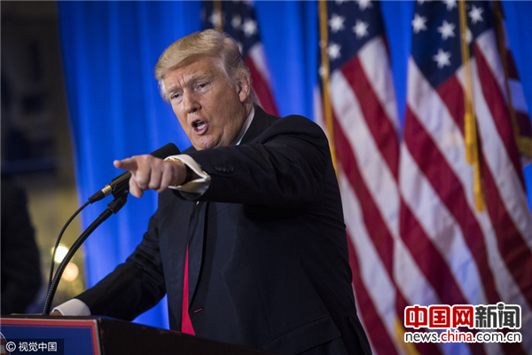 当地时间2017年1月11日,美国纽约,候任总统特朗普召开胜选后首场新闻发布会。(Jabin Botsford 视觉中国)