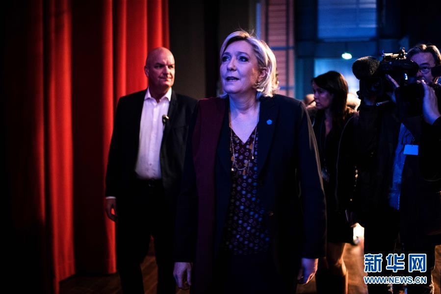 2月4日,在法国里昂,法国极右翼政党国民阵线主席玛丽娜·勒庞(前)出席竞选活动。法国极右翼政党国民阵线主席玛丽娜·勒庞4日在中部城市里昂开启总统选战,打出“脱欧”、“反移民”旗号,试图借助民粹主义浪潮拉拢选民。新华社/法新