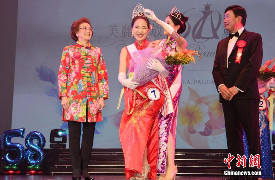 当地时间2月4日深夜,主题为“美丽绽放60载”的2017年度全美华埠小姐竞选在美国旧金山艺术宫揭晓,来自德州的18岁哈佛大学一年级学生杨开润夺冠。图为亚军获得者、毕业于乔治城大学、代表纽约州参赛的罗昕。中新社记者钟欣 摄