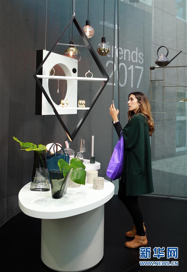 2月13日,一名女子在德国法兰克福参观消费品展。 2017年法兰克福消费品展于2月10日至14日期间举行,共有来自90多个国家和地区的4000多家展商参展。 新华社记者罗欢欢摄